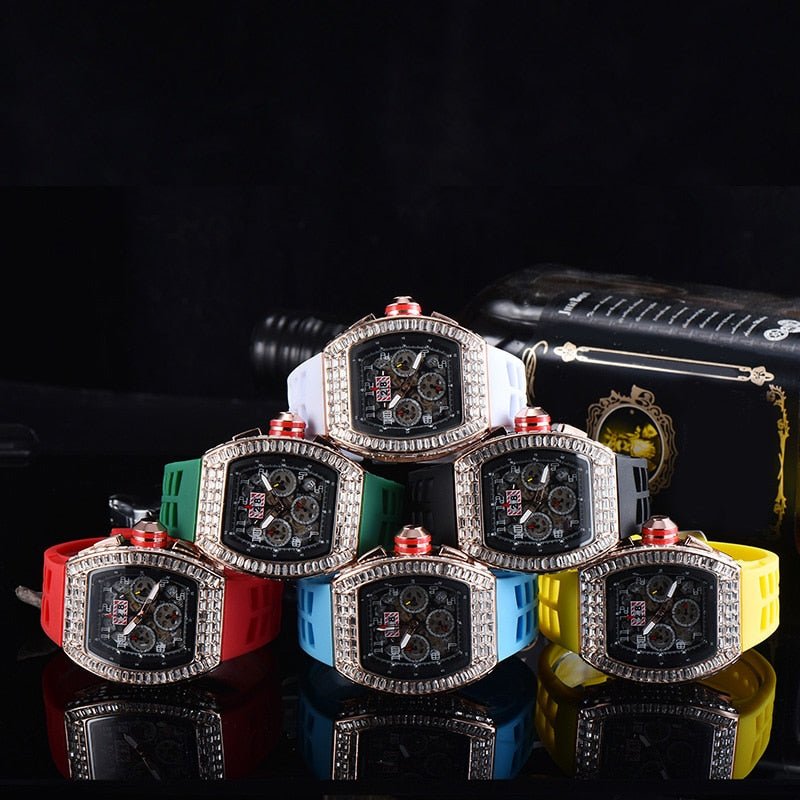 The stunning 18k Gold Baguette Diamond Mechanical Watch, a true masterpiece of luxury timekeeping. Crafted from the finest materials and featuring a mesmerizing array of diamonds, this watch is sure to impress even the most discerning of watch enthusiasts.